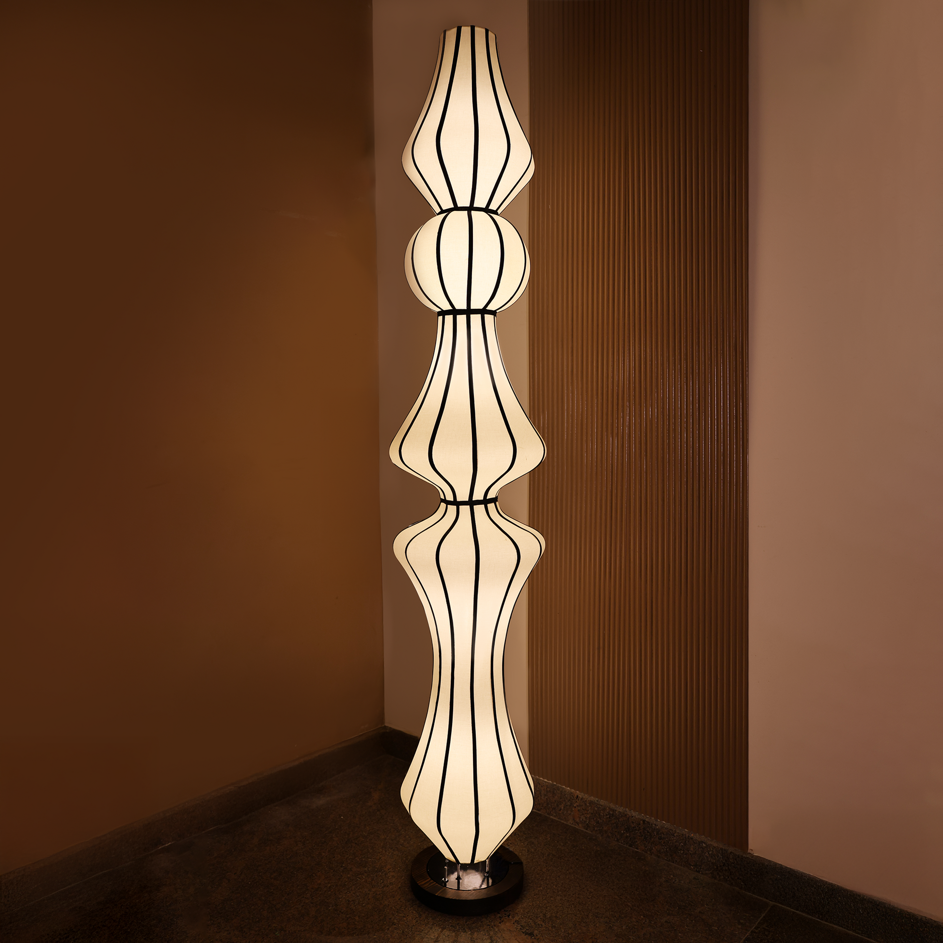 A poetic blend of shadow and glow. Inspired by traditional lanterns, this modern lighting collection features soft poplin fabric and bold black detailing. Aluna redefines minimal elegance, bringing timeless monochrome charm to contemporary spaces with a quiet yet captivating presence.